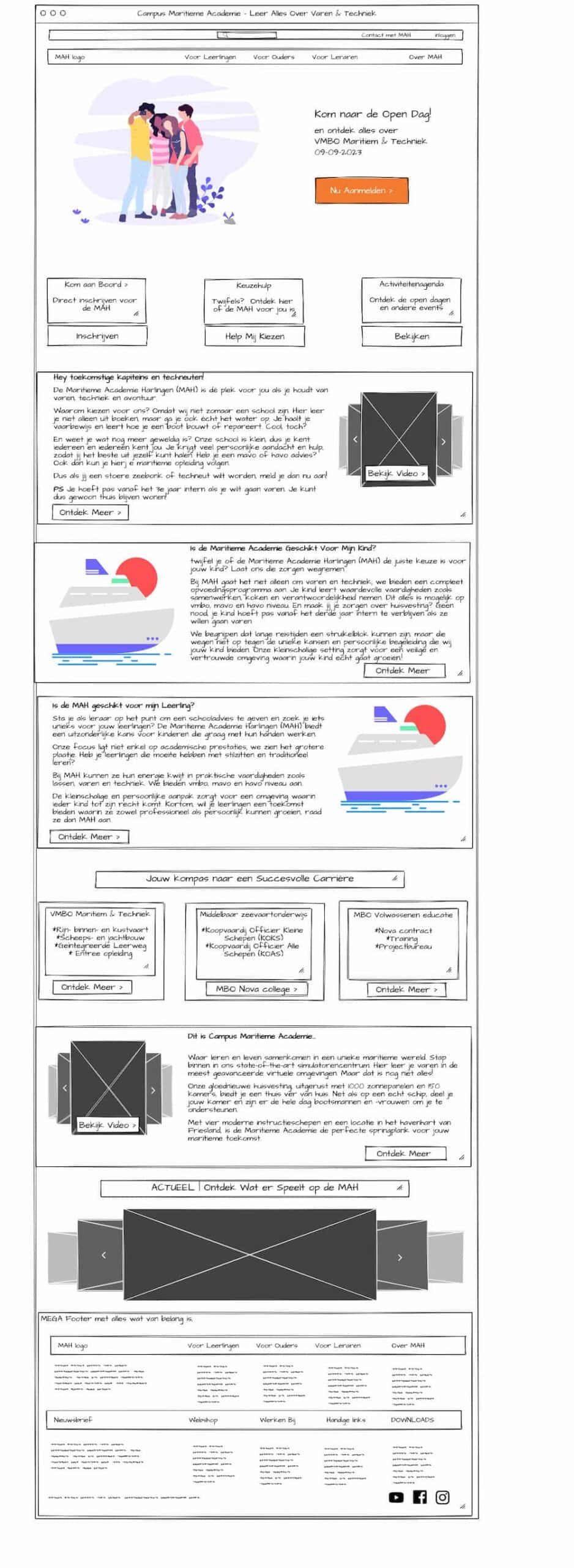 Voor de Maritieme Academie kregen we de vraag of we wilden helpen bij het verbeteren van de homepage. Deze stond vol met informatie en menu-items waardoor het onoverzichtelijk was.